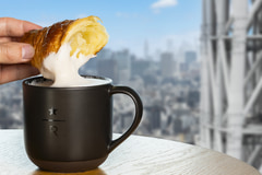 晴れた日には東京スカイツリーはもちろん、都心のビル群の先に富士山を眺めることもでき、春には隅田川の桜も眺められる。スターバックス リザーブ カフェでは、桜風味の「コルネッティ サクラ」(店内飲食490円、持ち帰り481円)が2月27日から提供されるが、「クラシック ダブル トール ラテ」(店内飲食760円、持ち帰り746円)にシナモンなどの各種コンディメントを加えてコルネッティをディップする“サクラ ディップ体験”も提案していく。