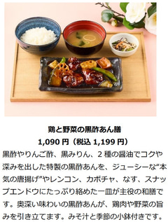 ・「鶏と野菜の黒酢あん膳」(1199円)