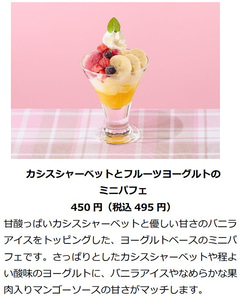 ・「カシスシャーベットとフルーツヨーグルトのミニパフェ」(495円)