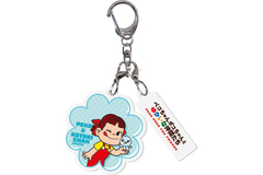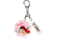 「ペコちゃんポコちゃんとゆかいな仲間たち」がデザインされた、カラフルな色合いがかわいらしいミルキーフラワー形の2連アクリルチャーム。デザインは全6種。