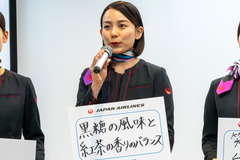 ローソンは昨年創業50周年を迎え、これまでの感謝を込めて創業月である6月から本年2月末まで“マチのハッピー大作戦”と題してさまざまなキャンペーンを実施している。その中の1つとして、今回はJALとのコラボが実現した。昨今の物価高などにより消費マインドは低調であり、消費喚起策としてさまざまなキャンペーンを行ない「お客さまに“ワクワク・驚き”をご提供したい」と説明した。また、JALとはUchi Caféスイーツを国際線機内食で提供したり、JAL講師によるローソン本部社員へのホスピタリティ講座を実施するなど、長年よい関係を築けていることも紹介した。
