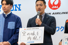 JALの岩本氏は今回のコラボレーションの意義について、日本各地にネットワークを持つ2社だからこそ可能な地域の盛り上げやつながりの創出に貢献できるのではないかと説明した。異業種コラボで生まれる“日常×非日常”については「日常の生活の中でローソンさんの店舗に行った際に、JALの機内サービスや旅のワクワク感をお届けできれば」と話した。