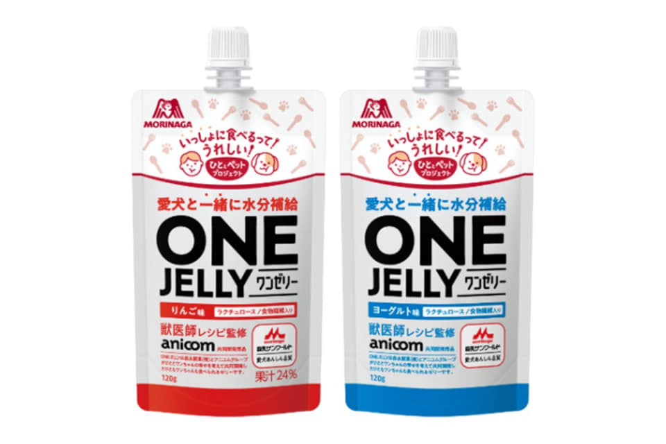 ひとはそのまま、愛犬にはお皿に移して楽しめるパウチタイプのゼリーで、果汁24%のりんご味、ヨーグルト味の2フレーバーを展開する。ラクチュロース・食物繊維配合で、そのままでも、ペットフードにかけてもおいしい品質に仕上げた。アニコムGが持つ健康データに基づく共同開発商品で、獣医師がレシピを監修した。