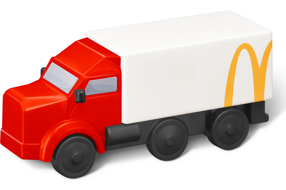マクドナルドデザインのトラックのおもちゃ。手で押して走らせて遊ぶことができる。