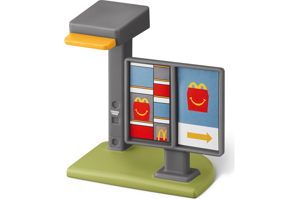 ドライブスルーのメニューボードをモチーフにしたおもちゃ。付属シールを貼ることができる。