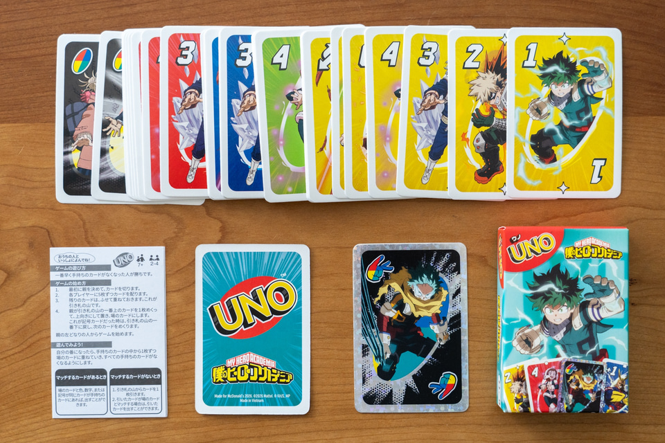 第2弾は「UNO オールワイルド SPY×FAMILY ヨル」「UNO フリップ 僕のヒーローアカデミア 爆豪勝己(ばくごうかつき)」「UNO 僕のヒーローアカデミア 緑谷出久(みどりやいずく)」の3種となっている。