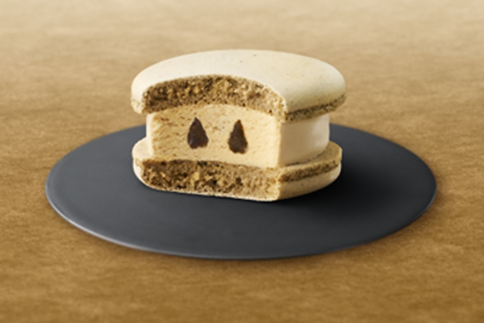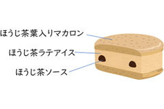 セブンプレミアム マカロンアイス ほうじ茶ラテは、ほうじ茶ソース入りのほうじ茶ラテアイスを、ほうじ茶葉を混ぜたマカロンでサンドしたマカロン風のアイス。ほうじ茶の香ばしい香りとやさしい甘さが楽しめる。