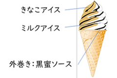 セブンプレミアム ワッフルコーン きなこみるくは、きなこアイスとミルクアイスをミックスし、黒蜜を重ねることで和のテイストに仕立てたアイス。隠し味に食塩を加えることで、アイスの甘さやきなこの風味を引き立てている。
