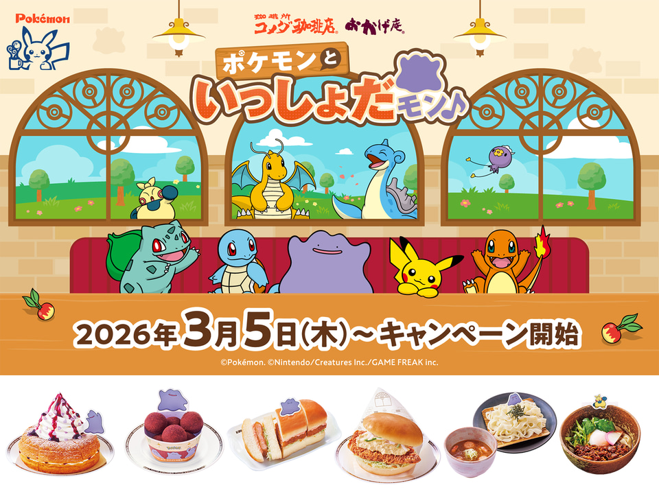 コメダ珈琲店・おかげ庵「ポケモンキャンペーン」実施。限定メニュー販売やグッズプレゼントも