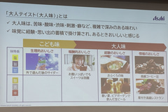 加えて中長期的には「スマートドリンキング(スマドリ)」をさらに進化させる。「飲まない層」「飲めない層」をターゲットに「大人味(大人テイスト)」の商品を発売し、「子供が感じる生理的な美味しさだけでなく、経験を積んだ大人だからこそ感じる苦味や複雑な味わいを、新たな価値として提案していきたい」と、「未来のビール会社」への展望を語った。