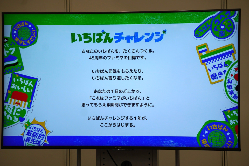 細見氏は2021年以来「チャレンジする方のコンビニ」として、コンビニ業界初のファッションショーを開催やデジタルサイネージの採用、ファミペイの開始など、コンビニの常識に捉われずに挑戦してきたことを紹介。そして「50周年に向けてのスローガンが『いちばんチャレンジ』。チャレンジし続けるという覚悟であり、お客さまにとっていちばんの店を目指す」と述べた。