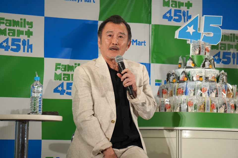 発表会後半では、アンバサダーで俳優の吉田鋼太郎さんと八木莉可子さんがコンビニエンスウェアを着て登場。新商品となる腕時計もつけ、吉田さんは「シンプルなデザインだけど、カラーリングがさりげなくファミマカラーになっていてかわいい」と話した。