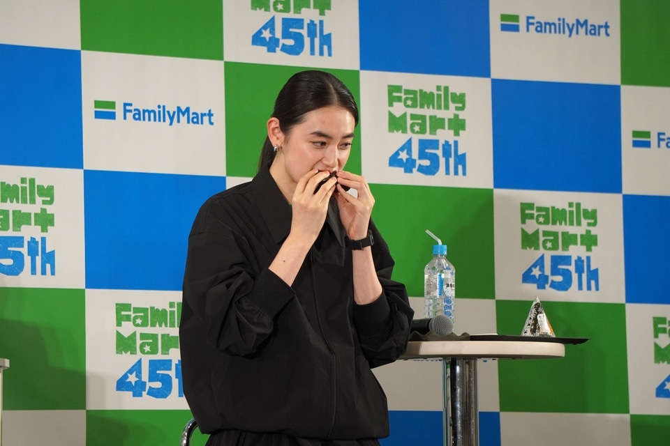 2人は新商品のおむすびを試食。八木さんは中具増量の「手巻 紅しゃけ」を食べ、「鮭がいっぱい詰まっていて、お米がふわふわ。ひと粒ひと粒が粒立っていておいしい」と語り、吉田さんは「大きなおむすび 明太子と鮭マヨネーズ」を食べて「本当にふわっとしていて、具材がないときがない。常に口の中に具材があって幸せ」と話した。