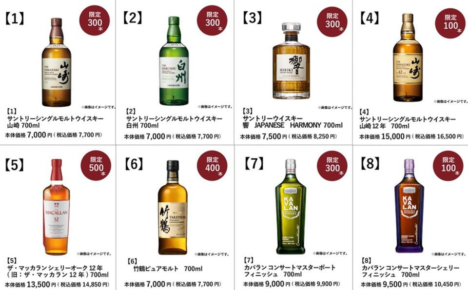イオンは東京・神奈川・千葉・山梨のイオン・イオンスタイル限定で「ウイスキー抽選販売」の受付を開始した。