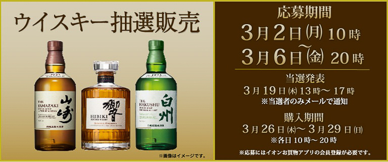 イオン、ウイスキー「山崎」「白州」「響」を抽選販売