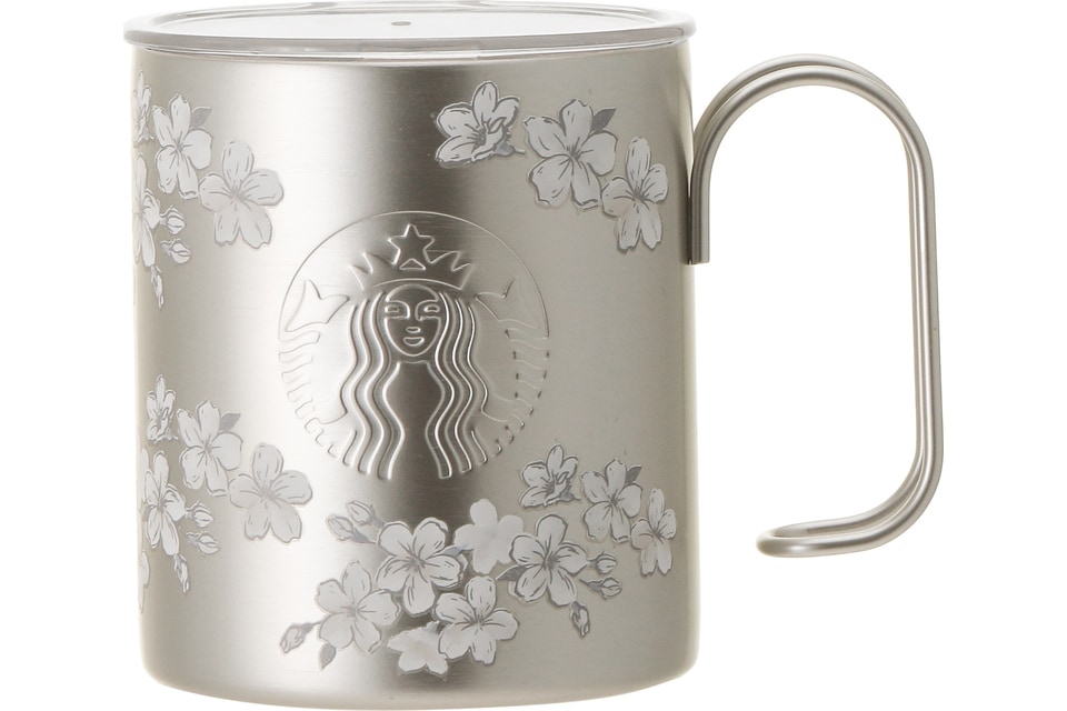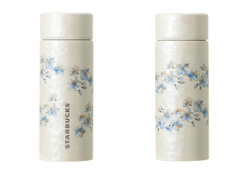 貝のような奥行きあるパール感が上品なステンレスボトルで、1点1点仕上がりが異なるシェル加工を施している。本体には桜を流れるように描いてあり、STARBUCKSロゴは縦にレーザー加工で表現している。