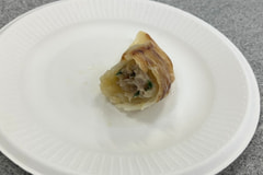 できあがった餃子を試食すると、パリパリのハネにふっくらもちもちとした皮に仕上がっており、フタありと遜色ないできあがりで、ジューシーに仕上がっていた。