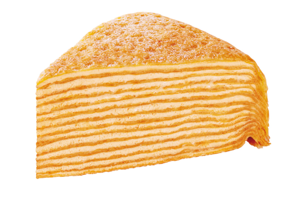 しっとり焼き上げたクレープ生地と、口どけの良いキャラメルクリームを13層に重ね合わせたミルクレープ。宮古島の雪塩を合わせることで、上品な甘さの中にほのかな塩味のアクセントが生まれ、味わいを引き締めている。キャラメルはビター感を残した奥行きのある味わいで、なめらかな口どけと、重なる層の心地よい食感が楽しめる。
