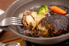 「THE 職人ビーフハンバーグ」は、あふれる肉汁の粗挽きビーフ100%ハンバーグの完成度が想像以上だった。単品かライス or パンセットが選べるが、ぜひライスセットを注文して、煮詰まってコクを増したソースの中に残したライスを入れてハヤシライス風に食べてみてほしい。