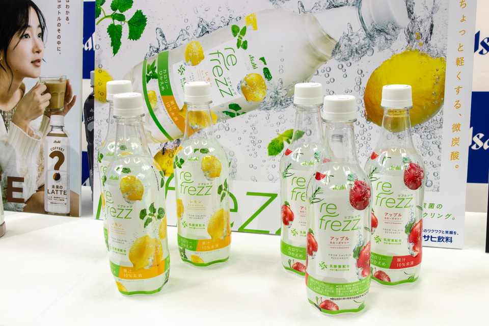「refrezz」は海外子会社Asahi Beverages America, Inc.が米国で展開する微炭酸飲料。本商品は日本国内市場向けに味わいを再設計し「レモン&レモンバーム」「アップル&ローズマリー」の2種類を450mLのペットボトルで展開する。発売は2026年9月、価格は200円前後を予定。