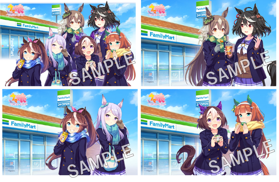 ウマ娘とファミリーマートの5周年キャンペーン用に用意した描き下ろしイラストをブロマイドとして販売する。全8種から選んで印刷できる。