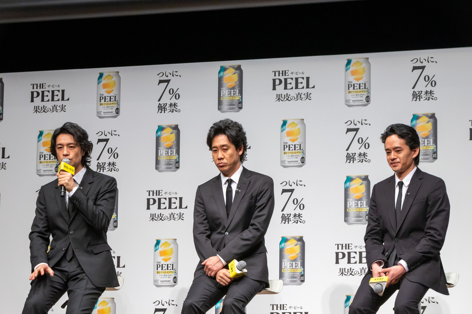 サントリー「THE PEEL」CM発表会に大泉洋・斎藤工・池松壮亮が登場。「THE PEEL ALC.7%」の魅力を語る