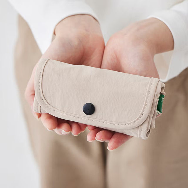 くるっと丸めて手のひらサイズにまとまるため、バッグの中でも場所を取らず、仕事帰りの買い物にも重宝する。