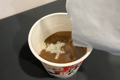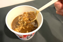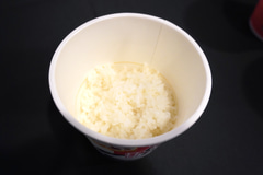 商品を実際に試してみると、乾燥されたパラパラの米に熱湯を入れて5分待ち、混ぜてみると米がふっくら! ふわ~っと炊きたての香りも立っていた。甘みも感じられるおいしさで、くさみなどは感じられなかった。レトルト食品をかけるのもおすすめということで、カレーをかけてみるとしっかり容器に入り、とても食べやすく、いろんな具材を入れて楽しみたくなった。