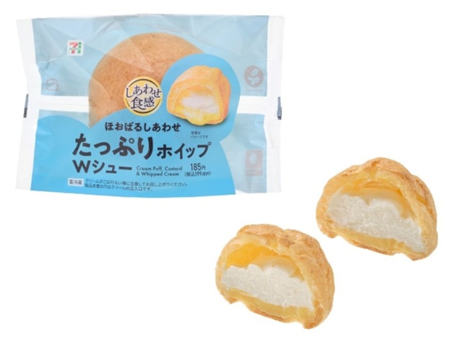 セブン-イレブン・ジャパンは「バニラ広がるカスタードシュー」と「ほおばるしあわせたっぷりホイップWシュー」をリニューアルし、3月24日から順次発売する。