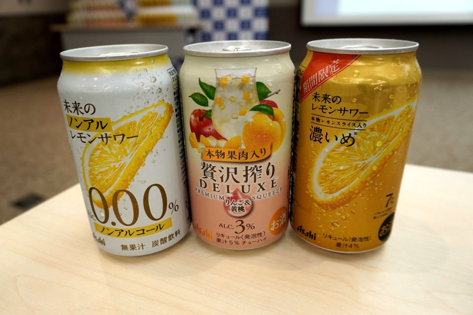 会場で3商品試したところ、「未来のレモンサワー 濃いめ」はアルコール度数が高いためしっかりした味わいだったが、味わいはビターですっきり飲みやすい。「未来のノンアル レモンサワー」は、「ノンアルでもこのレモンスライスの驚きが楽しめる!」とうれしくなった。「アサヒ贅沢搾りデラックス数量限定りんご&黄桃果肉入り」は、グラスに注ぐと果肉がふわっと浮き、気持ちがなんだか華やいだ。味わいは甘すぎずフルーティーで、ちょっと酔いたいときにぴったりだと感じた。