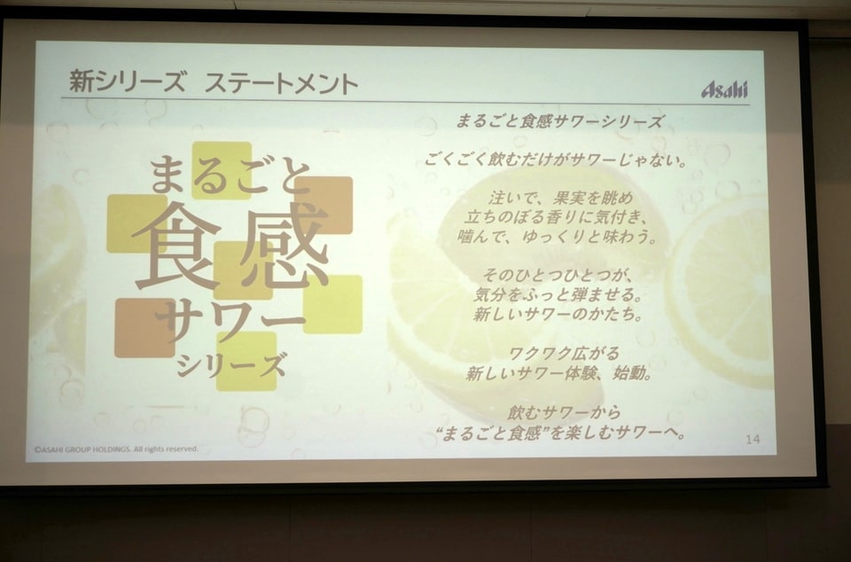 「まるごと食感サワー」は食感が楽しめる驚きや楽しさを提供するシリーズで、ブランドやカテゴリを越えて継続的に新商品を投入し、市場定着化を図っていく。