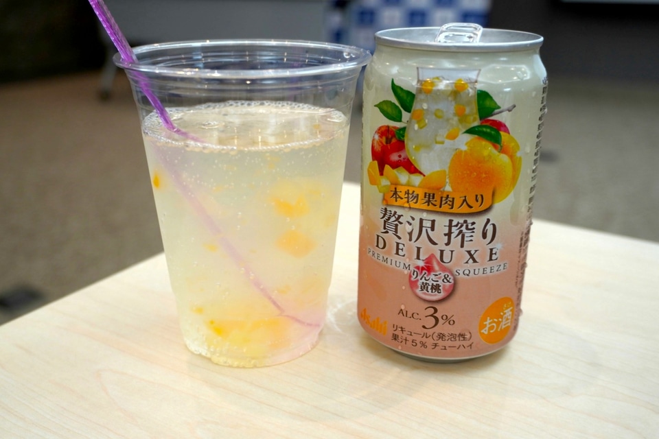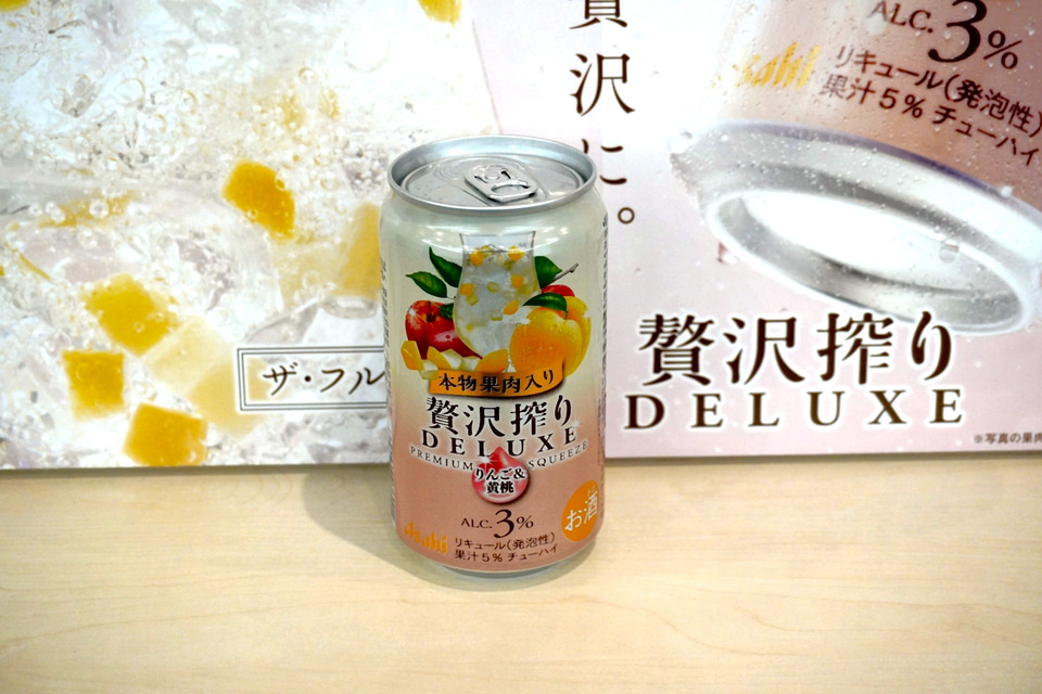 「アサヒ贅沢搾りデラックス数量限定りんご&黄桃果肉入り」も登場
