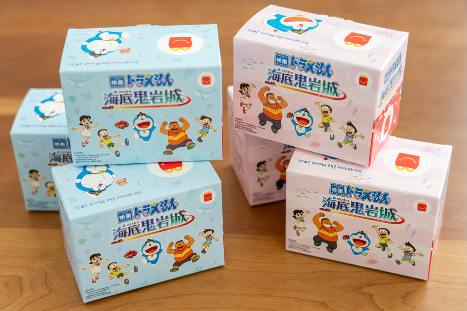 日本マクドナルドは3月20日から、ハッピーセット「ドラえもん」を約3週間の期間限定で販売する。シリーズ45作目として現在公開中の「映画ドラえもん 新・のび太の海底鬼岩城」の世界観をモチーフにしたおもちゃ全6種だ。