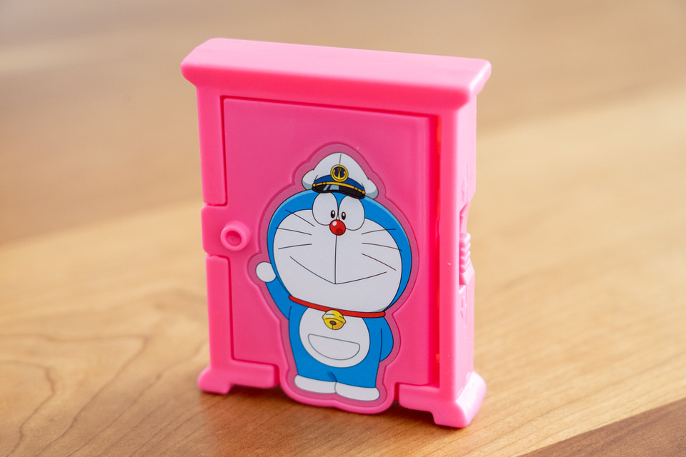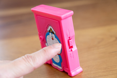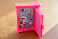 ご存知「どこでもドア」がモチーフのおもちゃが「ぼうけんに出かけよう!ドラえもんのどこでもドア」。ドアの吊元部分にあるスイッチを上下に切り替えることで、ドアを開けた時に出てくるイラストが変わる仕掛けになっている。なかなかよくできた楽しいおもちゃになっている。