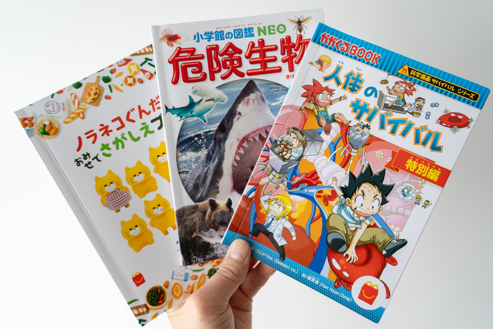 子供の知育や親子のコミュニケーションを目的とする日本マクドナルドの「ほんのハッピーセット」に、3月20日から絵本、図鑑、マンガが新登場する。