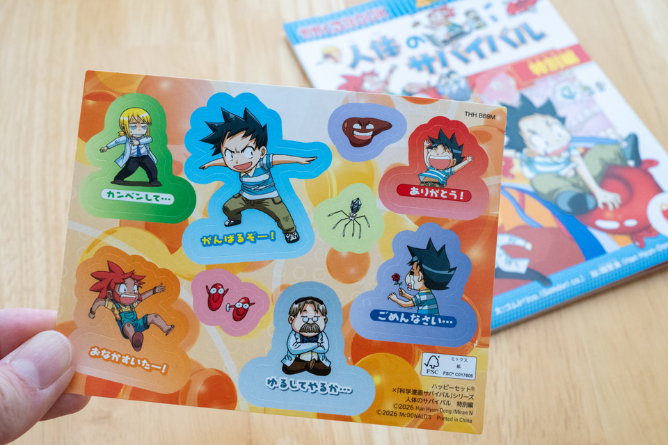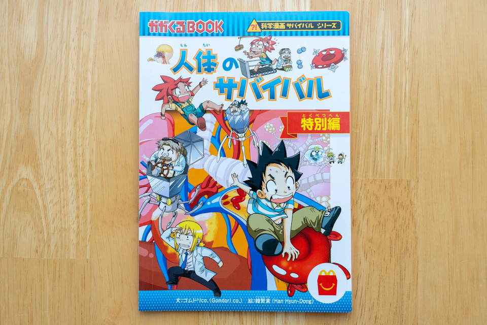 マンガ「科学漫画サバイバルシリーズ 人体のサバイバル 特別編」は、大人気学習漫画「科学漫画サバイバル」シリーズの「人体のサバイバル2」を、ハッピーセット用に特別編集したスペシャルブック。