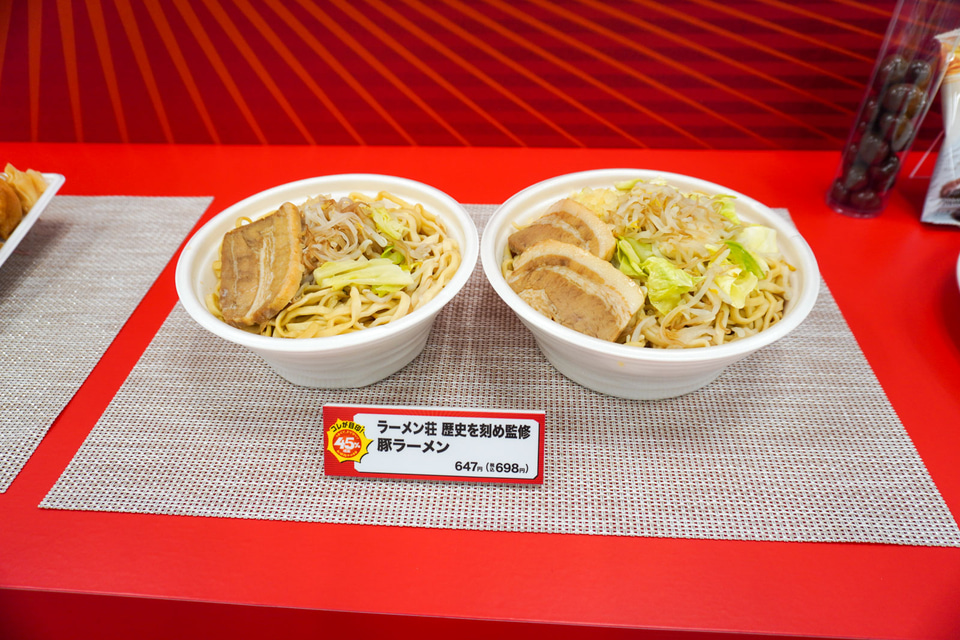 今回は年間売上1位やロングセラー人気商品を集めており、「生コッペパン(イチゴジャム&マーガリン)」「Afternoon Tea監修 シャルドネ香るストレートティー950mL」「大盛 明太子スパゲティ」などの8商品を初投入し、全14商品を展開する。また春の利用シーンを意識し、「ラーメン荘 歴史を刻め監修 豚ラーメン」「のびーるチーズのコク旨ピザまん」の温かいメニューもラインアップに加えた。