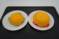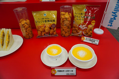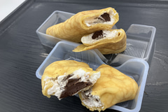会場で実際に「のびーるチーズのコク旨ピザまん」と「ファミマ・ザ・クレープ 生チョコ」が提供されたところ、2つとも45%増量された分、とっても大きい!