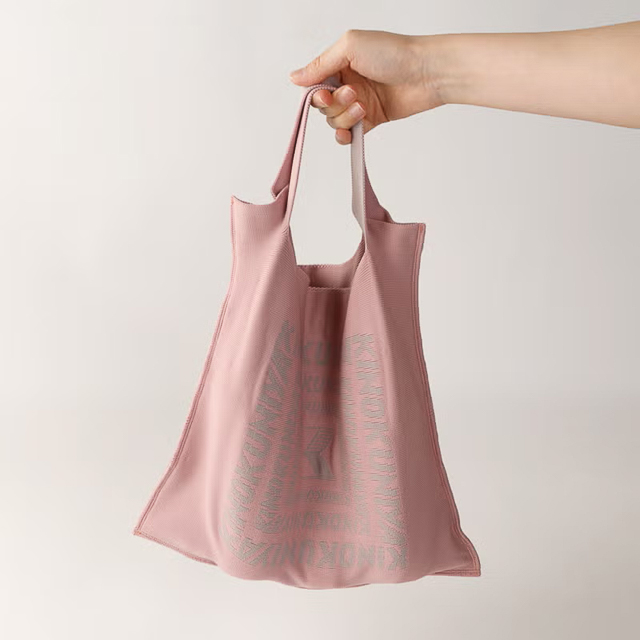 ニットをコミュニケーションツールとしたメイドインジャパンのライフスタイルブランド「KNT365」とコラボしたバッグ。リサイクルポリエステル素材で、洗濯機であらうこともできる。両面楽しめるバイカラーで、「グリーン×ベージュ」と「ピンク×グレージュ」を用意している。
