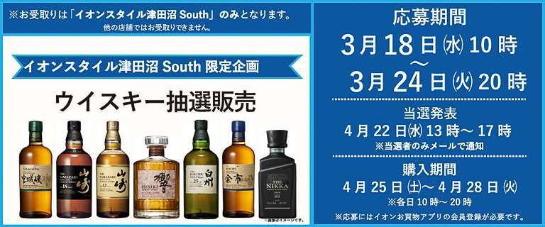 Webサイト: イオンスタイル津田沼 South「ウイスキー抽選販売」