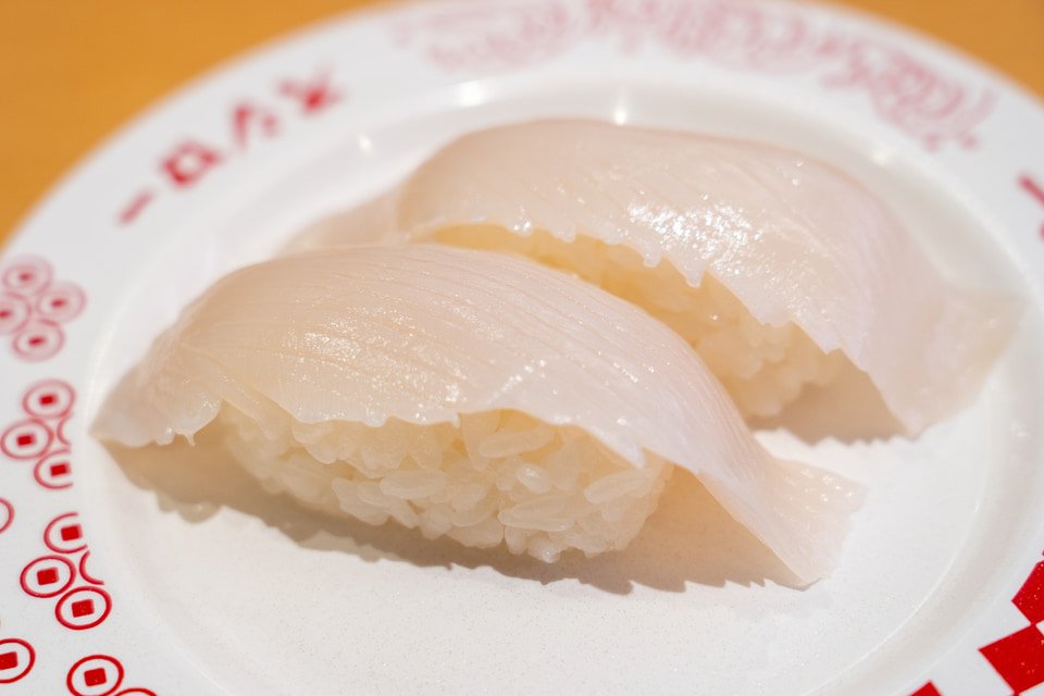同じく定番ネタのいかを大切りで味わえるのが「大切りいか」。噛むほどに溢れるねっとりとした甘みを大きなサイズで存分に堪能してみてほしい。なお本フェア期間中は「えび」「いか」両方とも通常サイズの提供はない。