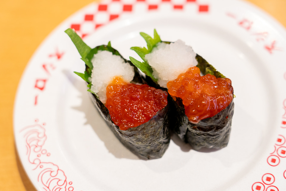 ・「煎り酒漬け筋子と大根おろし軍艦」(180円~)