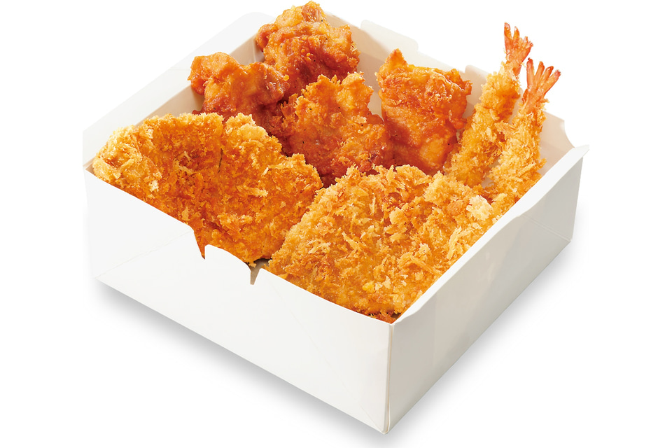 80gロース×1枚、チキンカツ×1枚、海老フライ×2本、から揚げ×2個