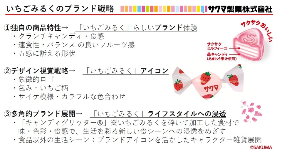 続いてサクマ製菓 商品部 鈴木佐知子氏が「いちごみるく」について紹介した。「いちごみるく」はサクサクとした食感とフルーツのおいしさにこだわったキャンディで、「今回のコラボは『いちごみるく』をより生活シーンに近づける機会となっている」と話した。