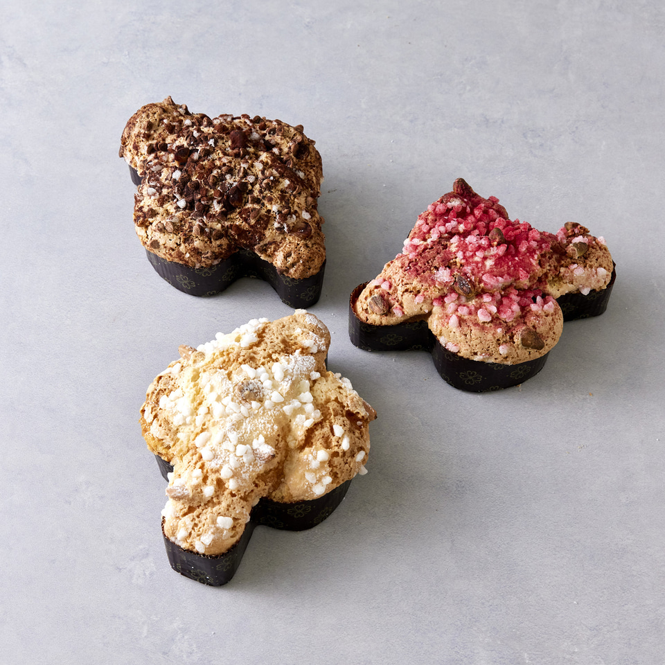 本場イタリアの「コロンバ」を再現し、プリンチ ミラノから受け継いだパネトーネ種を使用した生地を鳩型に焼き上げた発酵菓子。時間をかけて発酵させた生地はしっとりとろけるような食感が特徴で、アーモンド、パールシュガー、粉糖をあしらい、香ばしさとやさしい甘み、ざくざくとした食感が楽しめる。