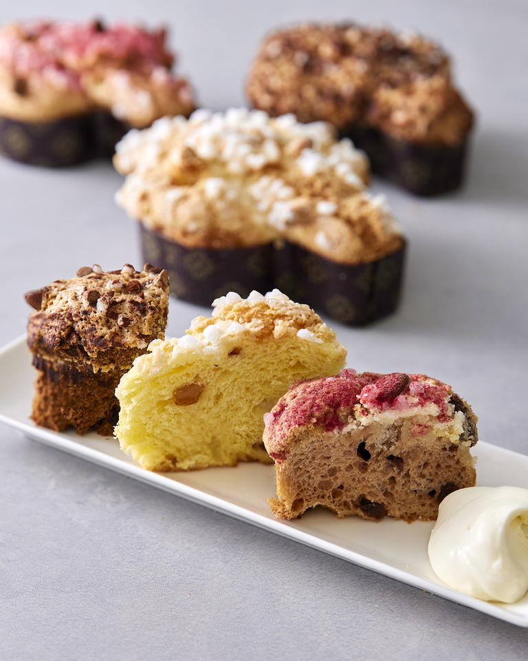 イタリア・パヴィア発祥とされる伝統菓子「コロンバ」は、パスクア(イースター)が近づくと街の菓子店やベーカリーに並ぶ、春の訪れを告げる存在。本場の伝統的な製法で作られた「プリンチコロンバパスクアーレ」、持ち帰りやすい手のひらサイズの「プリンチコロンバマーノ」、3種のコロンバを一度に楽しめる「プリンチコロンバマーノ フライト」を用意する。
