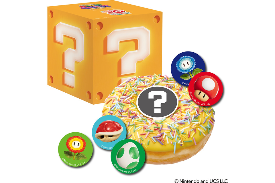 また、コラボドーナツ3種と定番ドーナツ2種を詰め合わせた「ギャラクシー ダズン ハーフ(6個)」を、映画の世界を描いた限定デザインのボックスで提供し、購入した人には「マリオ」「ヨッシー」「ロゼッタ&チコ」の限定デザインのステッカーをプレゼントする。さらに、コラボデザインのエコバッグを4000枚限定で販売する。