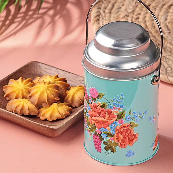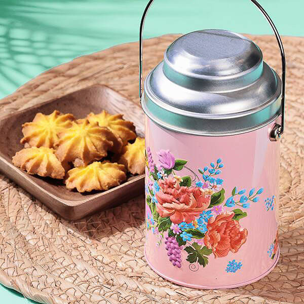 台湾の伝統的な客家柄(ハッカガラ)をデザインした円筒タイプの缶で、パイナップル風味のクッキーが7枚入っている。缶のサイズは約75×130mm(径×高さ)で、カラーはブルーとピンクを用意。いずれも価格は658円となっている。