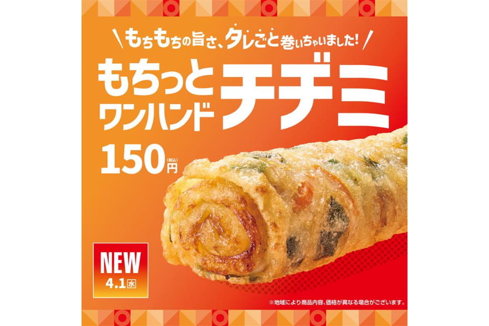 ニュースほっともっと、もちもち生地に特製ソースを入れロール状にした「もちっとワンハンドチヂミ」発売 編集部:宮内楓2026年3月29日 16:302026年4月1日 発売ほっともっと「もちっとワンハンドチヂミ」 持ち帰り弁当の「Hotto Motto(ほっともっと)」(プレナス)は、新サイドメニュー「もちっとワンハンドチヂミ」を期間限定で4月1日に発売する。価格は150円。 彩り豊かなニラ・ネギ・人参を混ぜ込んだもちもち生地に、ごま油と唐辛子の香ばしさに絶妙な酸味と甘味を掛け合わせた“特製チヂミソース”を入れ、ワンハンドでも食べやすいロール状に仕上げた。ソースを中に入れることで、「タレいらず」でどこでも手軽に味わえ、弁当のプラス一品としてはもちろん、ちょっとした小腹満たしにも最適だという。 「もちっとワンハンドチヂミ」(150円)