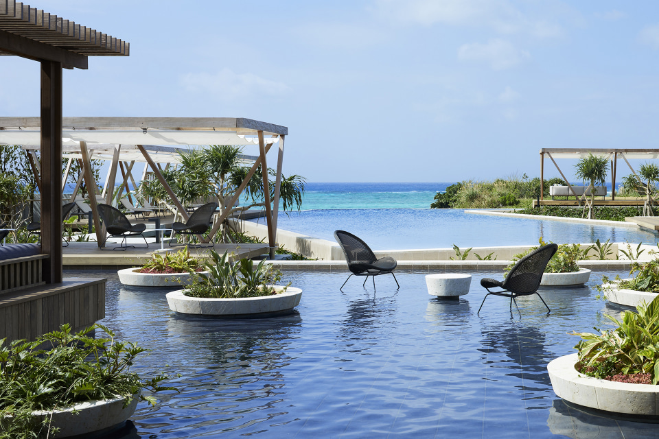 夏の暑さが訪れる前の1年でもっともさわやかで過ごしやすい時期を「うりずん」と呼び、海に溶け込むように広がるインフィニティプールの周りには、色彩豊かな花が咲きほこる。波音が渡るプールサイドで春を彩る草花の香りを楽しむなど、優雅なひとときを過ごせる。